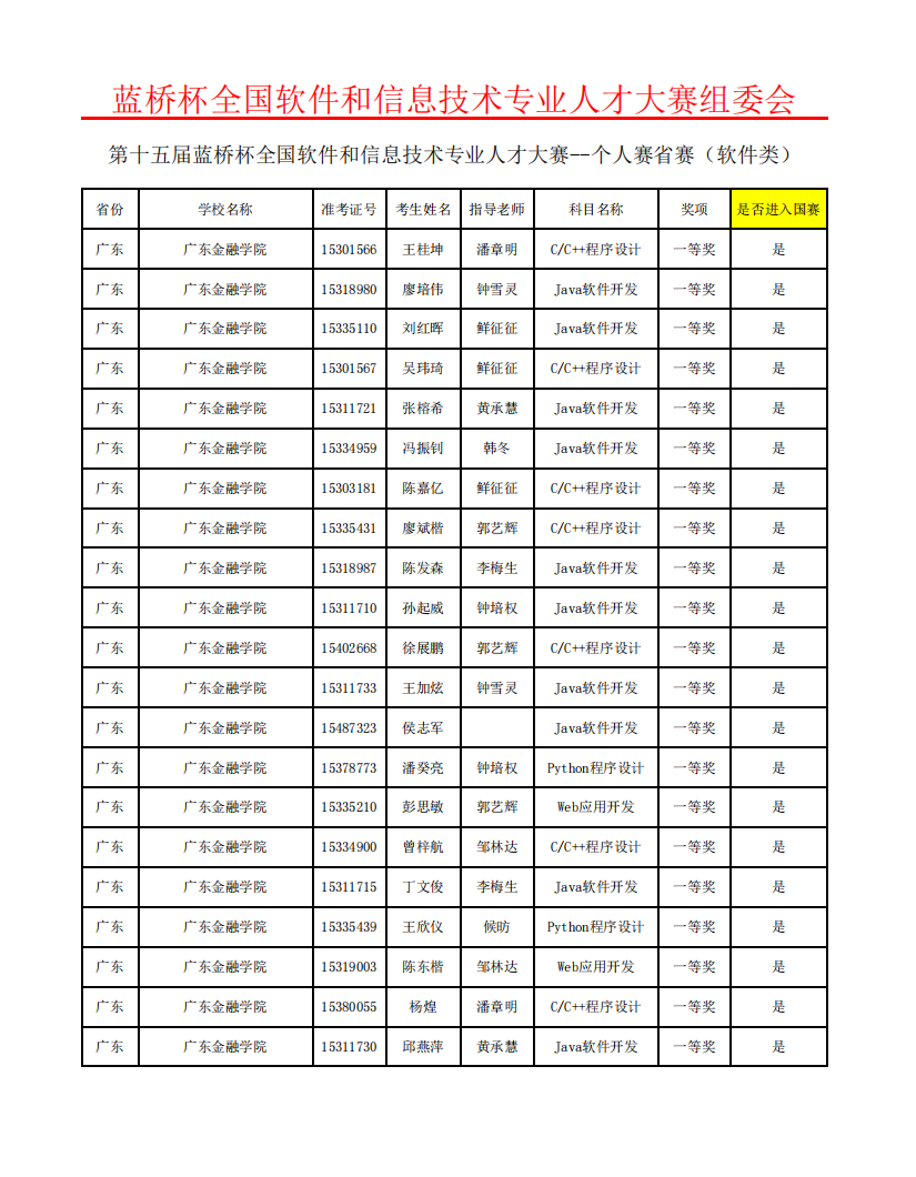 附:伟德官网第十五届“蓝桥杯”全国软件和信息技术专业人才大赛个人赛省赛名单