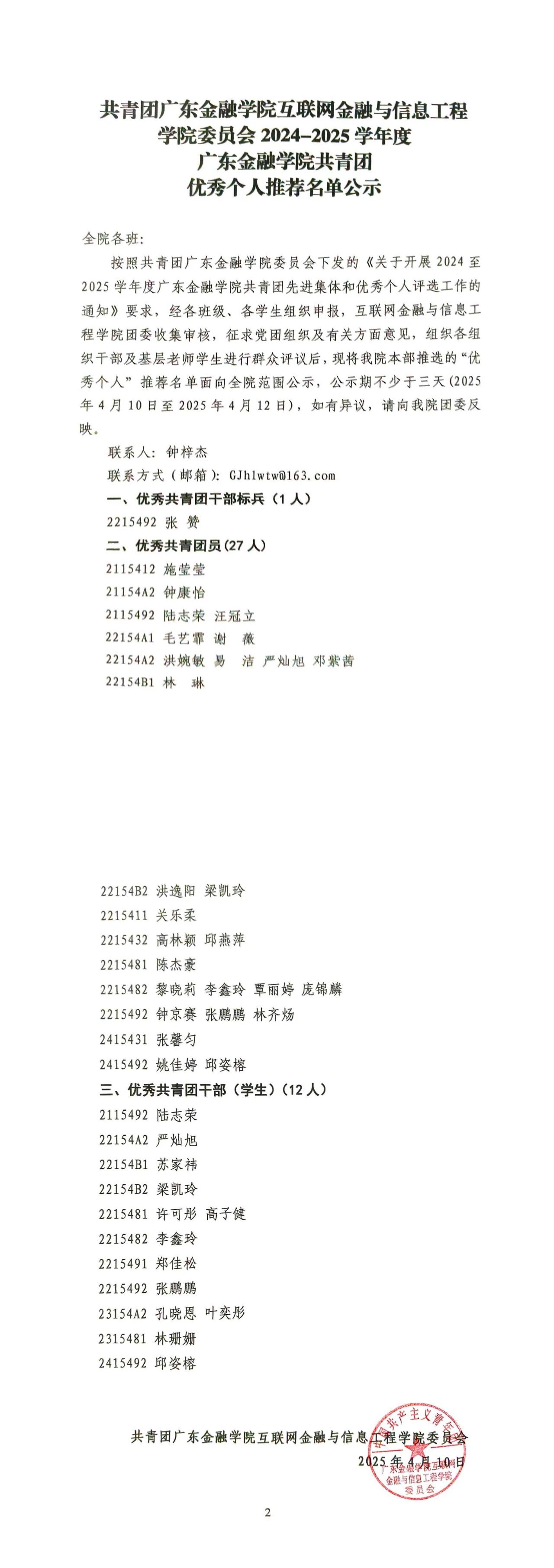 公示 | 2024-2025年度共青团优秀个人推荐名单公示