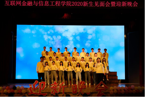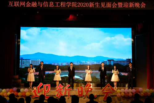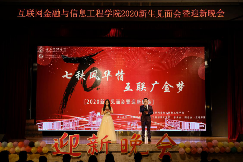 在迎新晚会上,晚会突出“七秩风华情、互联广金梦”的主题,用歌唱、朗诵、舞蹈、话剧等形式为师生们呈现了一个丰富多样、精彩有趣的艺术舞台。由歌唱队演唱的《燕归巢》拉开了晚会的序幕,外文公司舞蹈队友情演出的《红昭愿》让人领略了优美的舞蹈,由2020级新生班计科二班自导自演的话剧《“良心”口罩》演绎了感人的抗疫主题故事,由司仪队自己编词的朗诵节目《礼赞广金》为庆祝建校70周年献礼,最后晚会在2020级计科三班的大合唱《昨日青空》中圆满落幕。