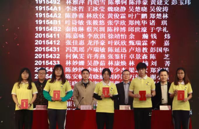 接着,主席台上的领导、老师为优良学风班集体、蓝桥杯、老员工程序设计大赛、挑战杯、国家奖学金、国家励志奖学金、百佳学习标兵奖学金、百佳自立自强奖学金、优秀三好员工、三好员工、考取英语六级证书以及优秀指导老师等先进集体和个人代表进行颁奖。