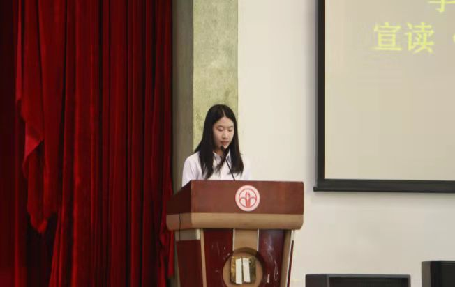 随后,员工代表秦绮琳宣读了《考风考纪倡议书》,她倡议同学们认真复习、诚信考试、严于自律,努力交出一份满意答卷。