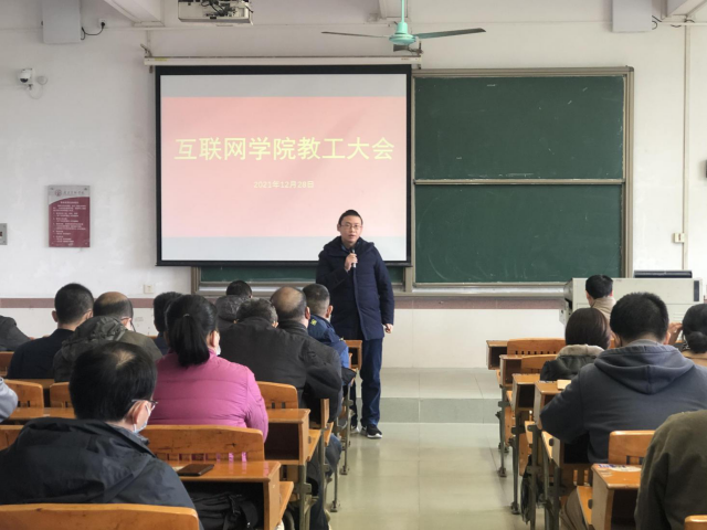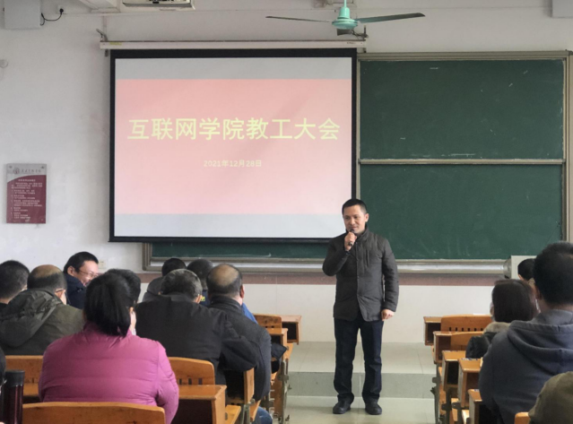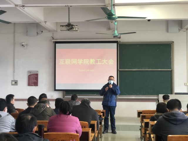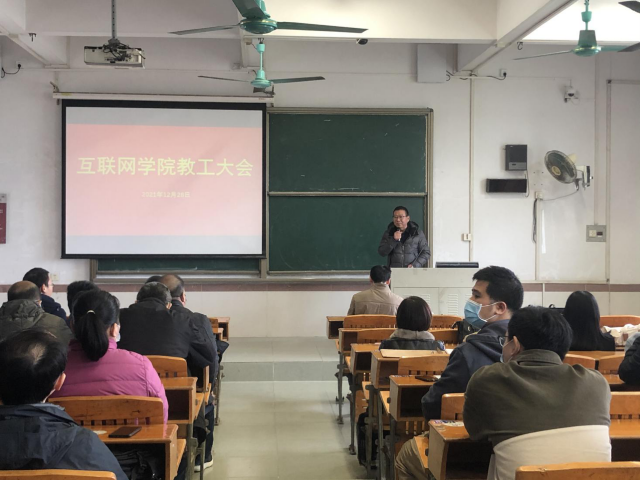 2021年12月28日,伟德官网在7栋102课室召开全体教工大会,全院教工参加了会议,会议由院长吴炎太教授主持。
