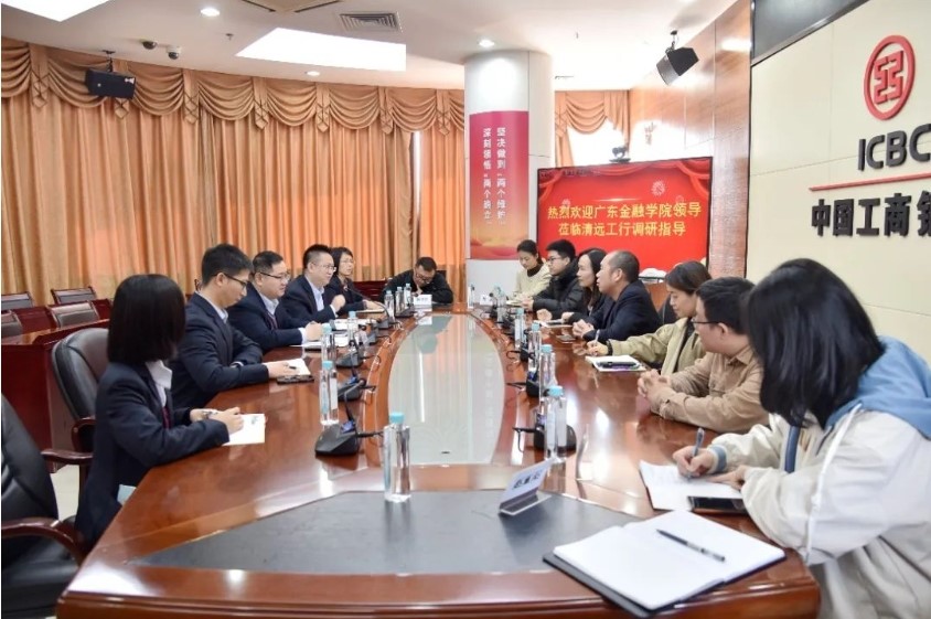 为深化校企合作,探索金融与AI领域产教融合新路径,拓宽毕业生就业渠道,深化校企供需对接,大数据与人工智能公司经理廖文辉、党委副书记缪洁,互联网金融与信息工程公司党委副书记李琳琳于3日19日率队赴中国工商银行清远分行开展访企拓岗活动。