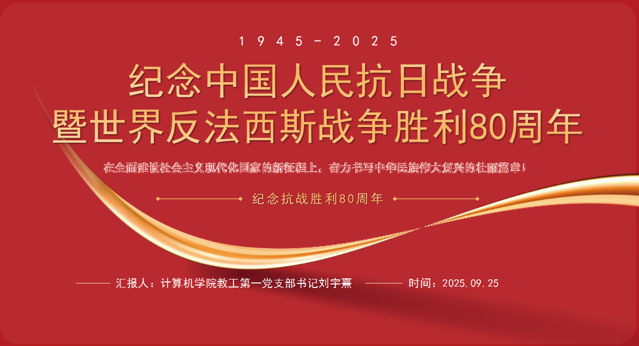 为深切缅怀革命先烈,弘扬伟大抗战精神,9月25日,伟德官网教工党支部召开全体党员大会,专题学习“纪念中国人民抗日战争暨世界反法西斯战争胜利80周年”主题党课。本次党课由教工第一党支部书记刘宇熹同志主讲。