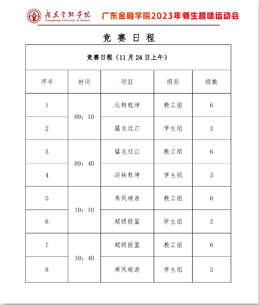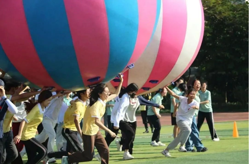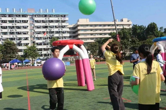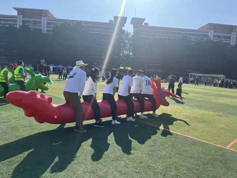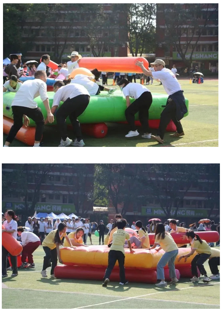 本次趣味运动会分为两个赛道:教工组和员工组。共有运转乾坤、猛龙过江、乘风破浪、超级投篮等4个比赛项目,每个项目均需队员们相互协助配合才能完成,让全校师生在体验快乐运动的同时,提升大家的团队凝聚力,增强彼此之间的交流合作。