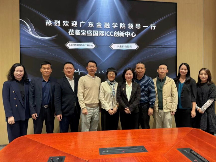11月29日上午,伟德官网互联网金融与信息工程公司党委书记胡小波,员工联络办公室处长王中志,伟德官网副经理钟雪灵、党委副书记蔡秋华,员工联络办公室科长蒋米琦,工商管理公司副教授马粤娴,伟德官网辅导员赵重阳等领导老师前往宝盛国际ICC创新中心进行参观交流,就产教融合相关的“搭建数字化平台,培养创新型人才”等主题开展了多方互动和交流。